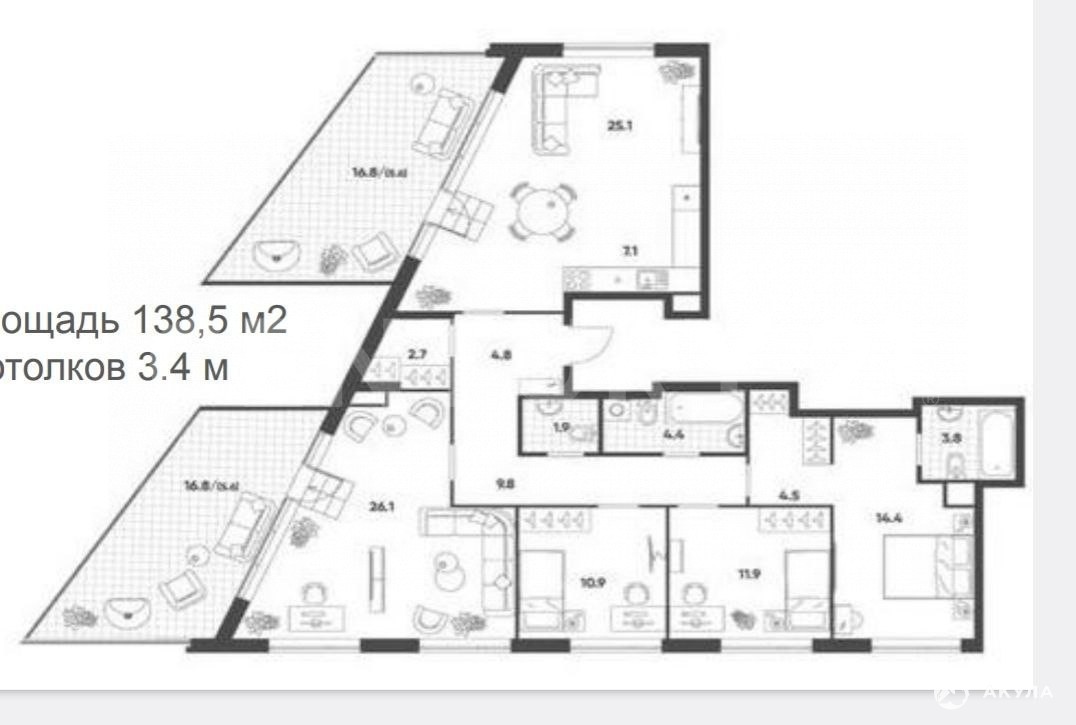 - 25.1 м²