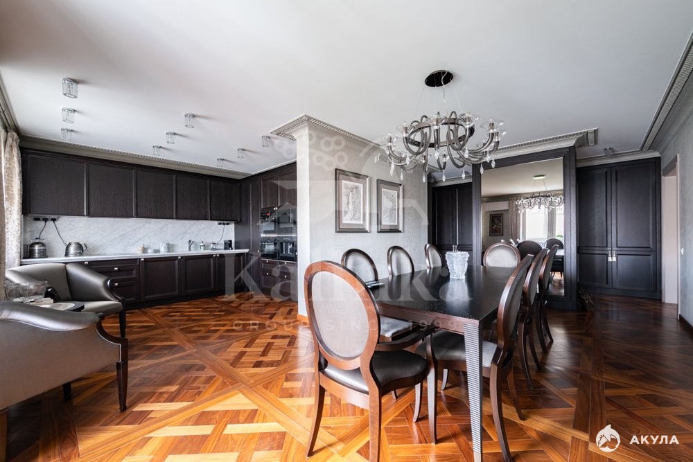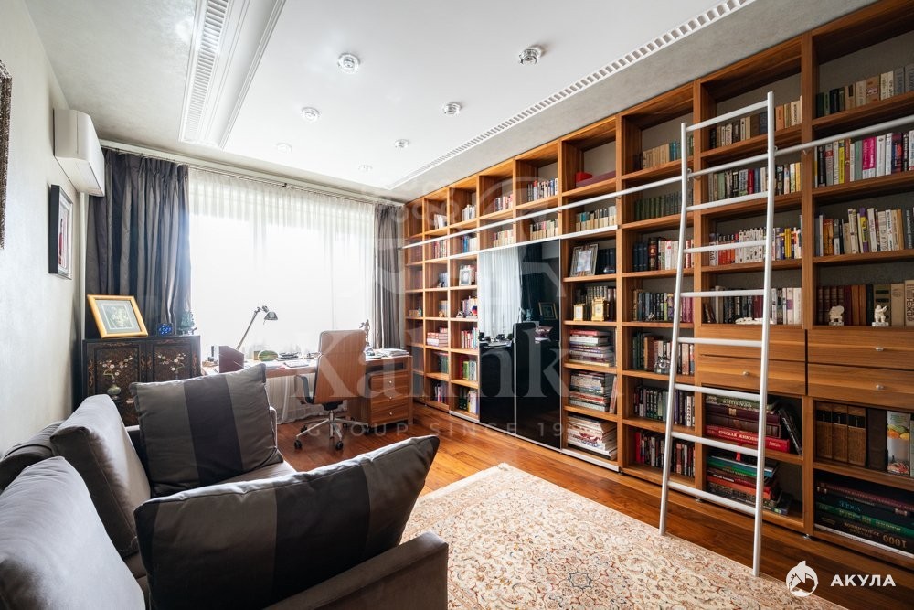 Функциональная планировка: кухня-гостиная, комната для занятий спортом, библиотека, 2 больших гостинных , мастер-спальня, 3 санузла, 3 лоджии и балкон, гардеробная.