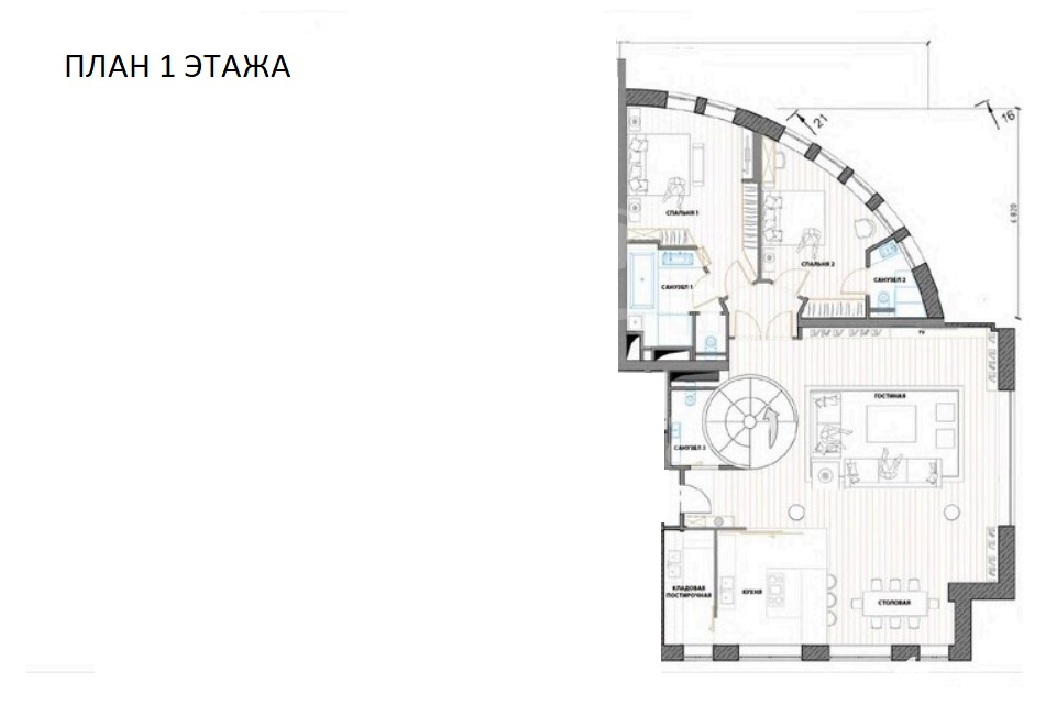 Также имеется возможность объединения с соседним двухэтажным пентхаусом.