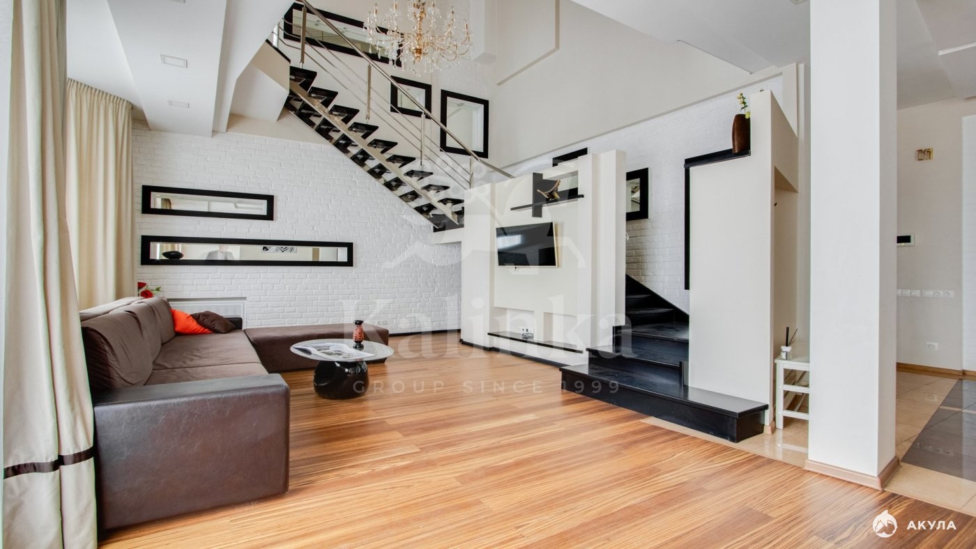 1-й уровень: гостиная со вторым светом, 3 балкона, кухня-столовая, 2 санузла, 2 гардеробные, 2 спальни, постирочная, два входа в квартиру.