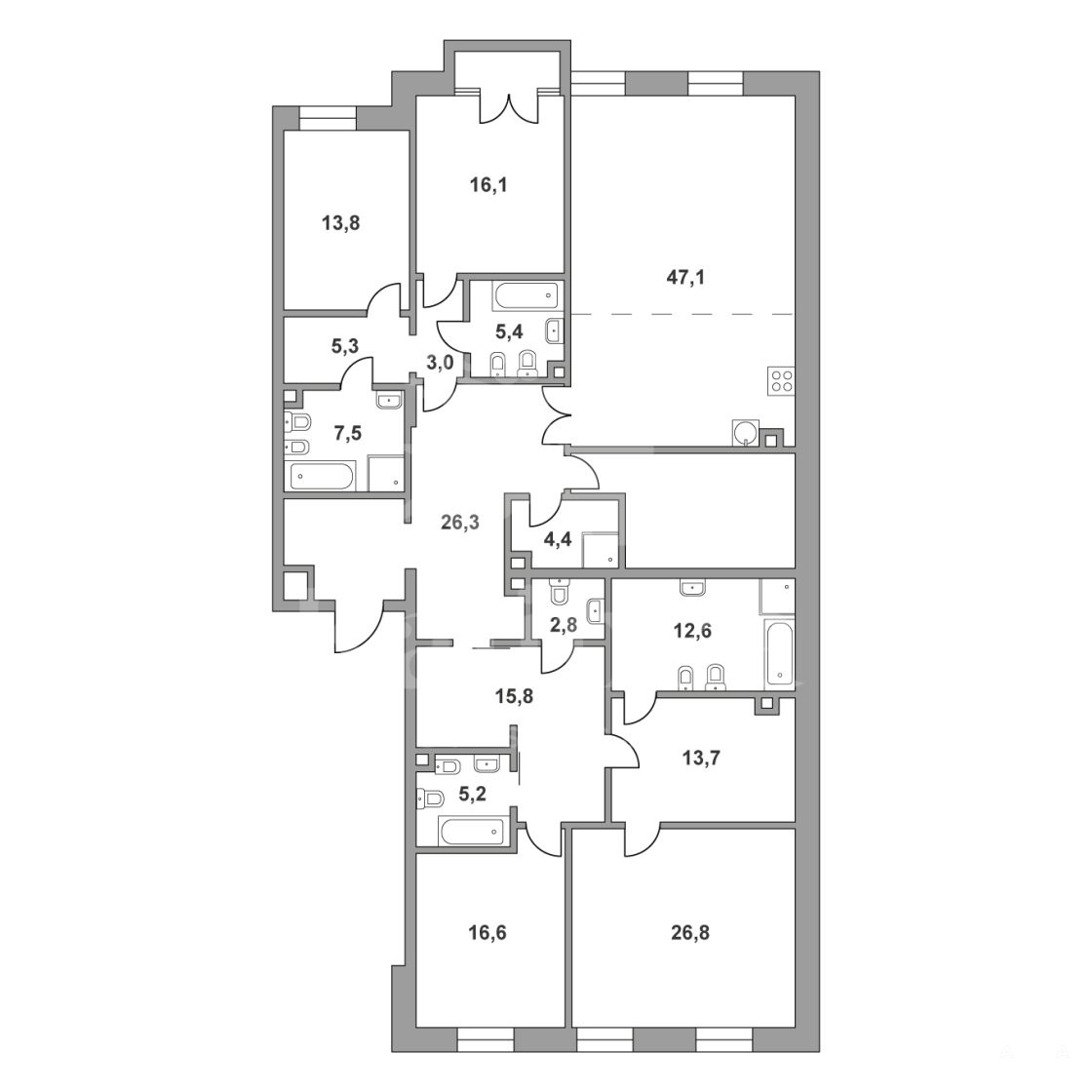Просторная квартира площадью 236 кв. м в элитном жилом комплексе "Полянка/44", корпус "Гортензия".