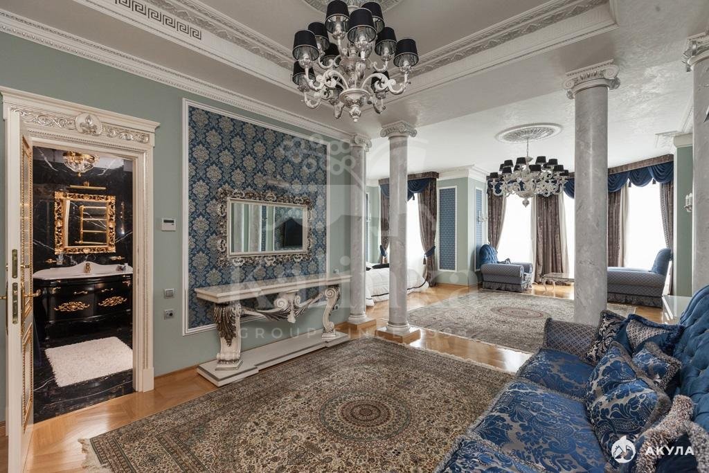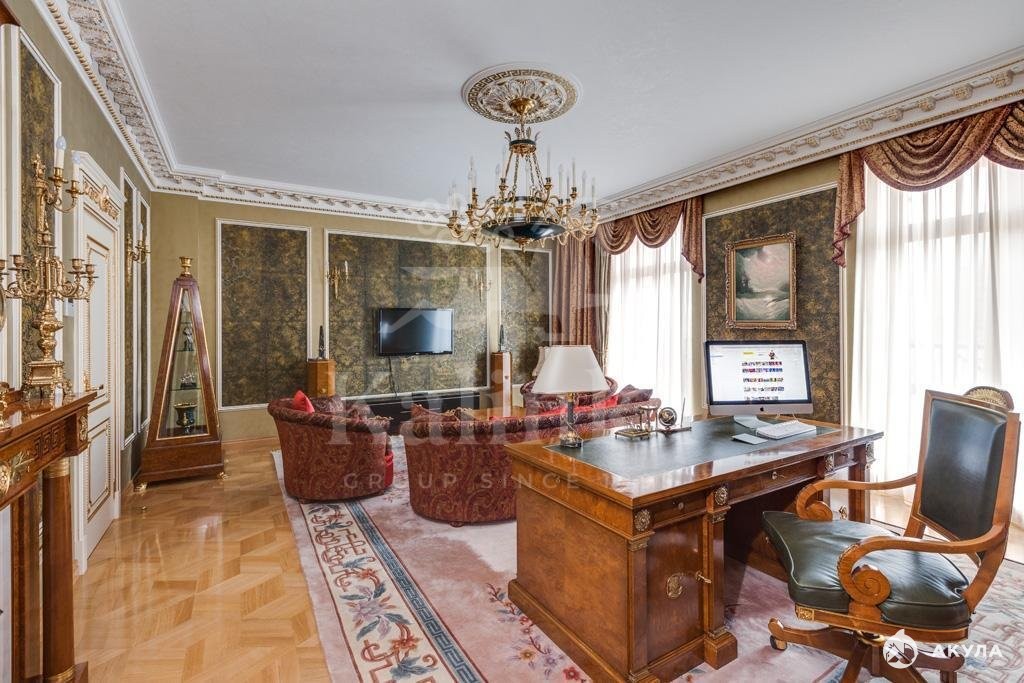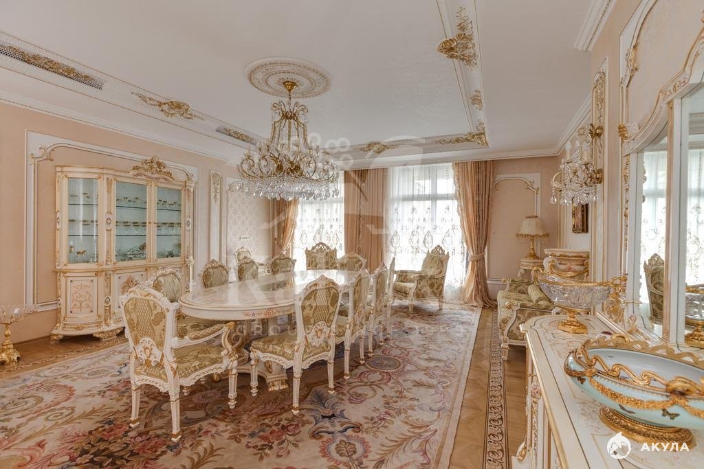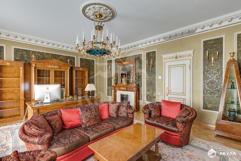 Шестикомнатная квартира площадью 368 кв. м располагается на шестом этаже элитного ЖК «Онегин». Планировка - гостиная, кабинет, кухня-столовая, комната для стирки, три спальни и три с/у. Имеются два балкона. Отличные виды из окон.