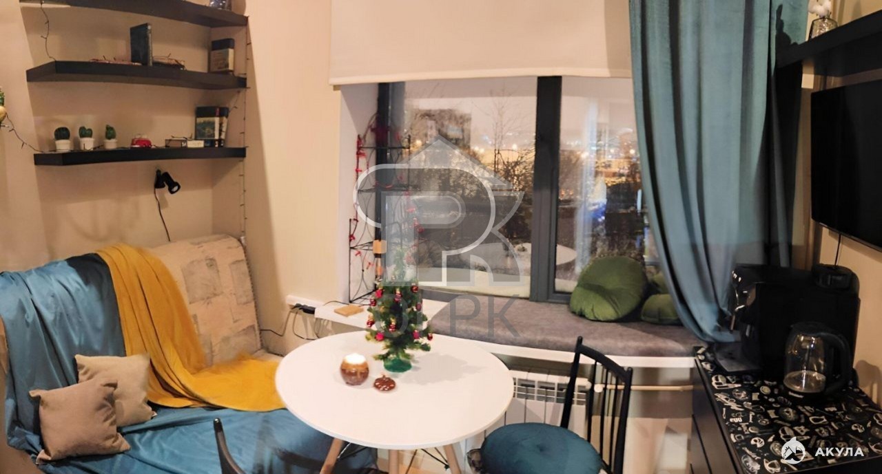 Квартира находится на четвертом этаже четырехэтажного дома, что гарантирует прекрасную инсоляцию и отсутствие шума от соседей сверху. Панорамные окна во всю стену выходят на улицу, наполняя пространство светом и открывая динамичную городскую панораму. Особенностью объекта является его планировочное решение: объединенная площадь в 19 кв. м гармонично сочетает гостиную, зону для сна и кухню, создавая ощущение простора, редкое для помещений такого метража. Отдельная современная совмещенная санузел добавляет комфорта.