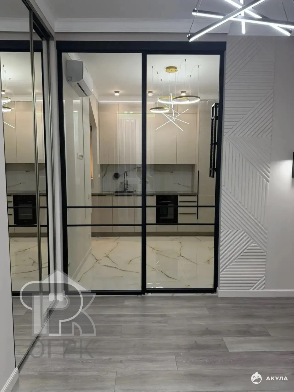 Сделана хорошая звуко-шумоизоляция, теплый пол, система кондиционирования. Великолепное световое решение интерьера выполнено стильно, лаконично, грамотно.