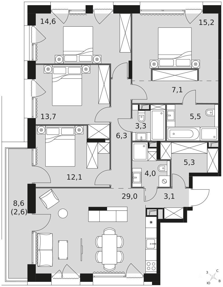 Продается 5-комн. квартира, площадью 122.3 м2.