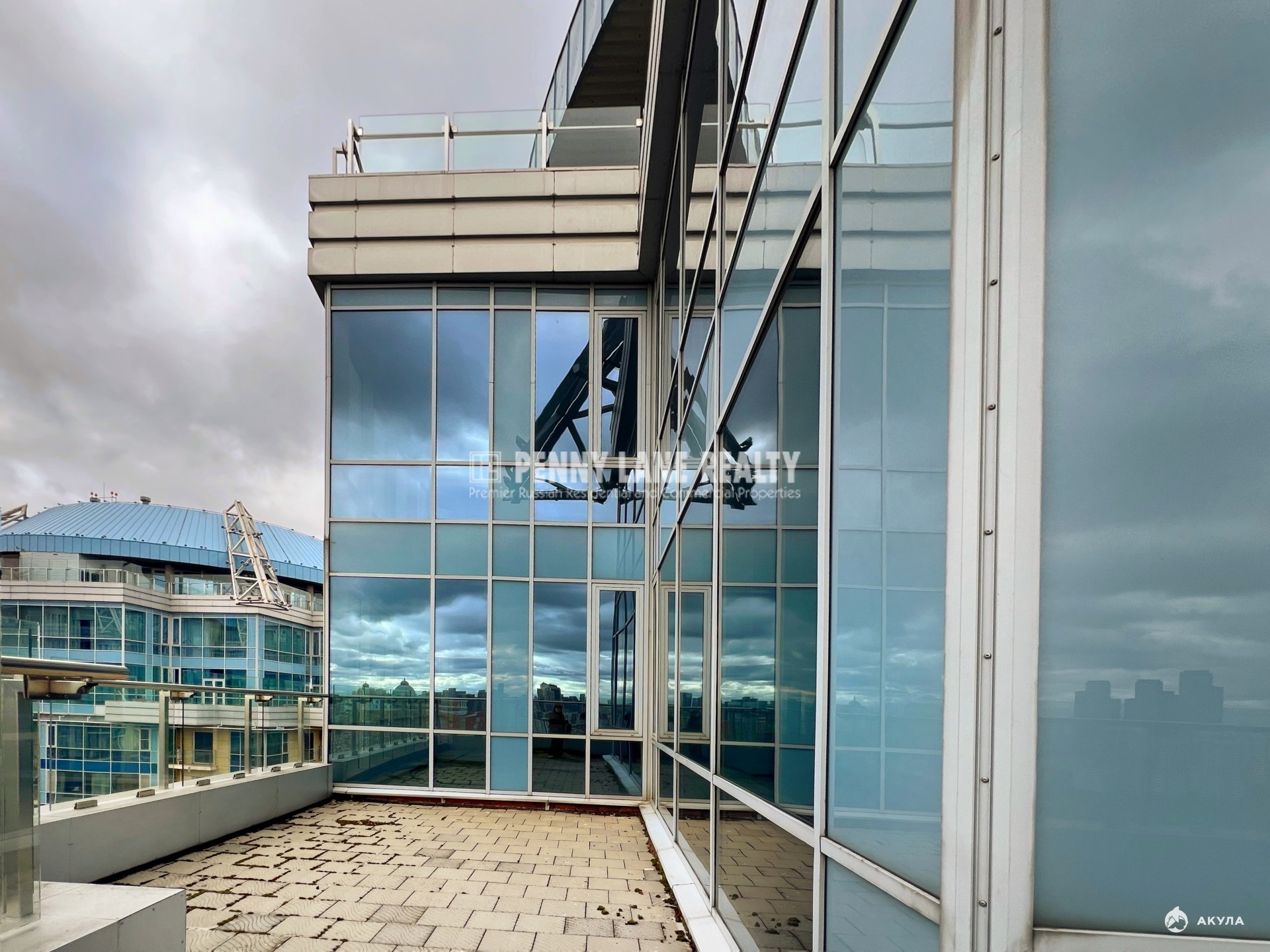 Пентхаус располагается на 29, 30, 31 этажах, панорамное остекление, высота потолков 4 метра, большие террасы на первом и третьем уровне. Есть возможность разделения на две квартиры.