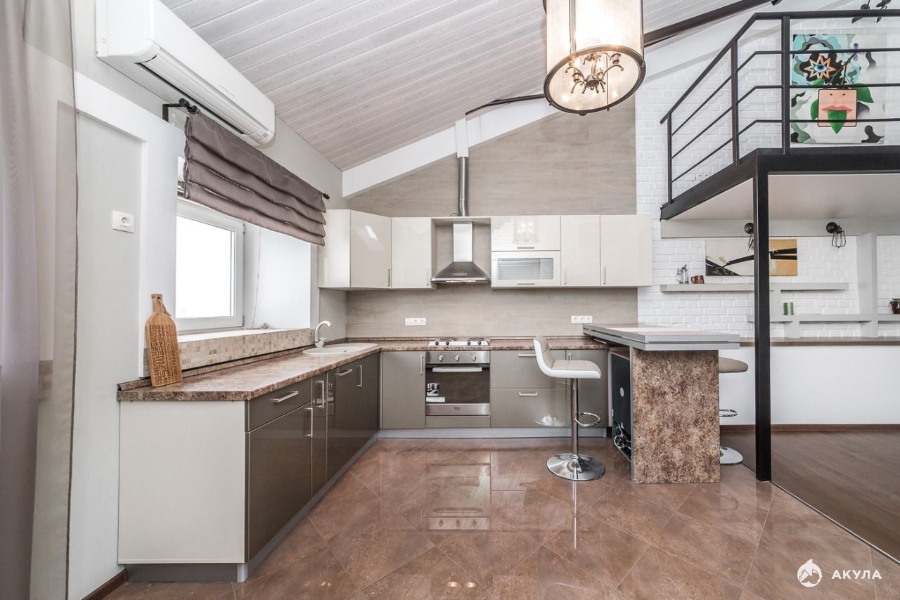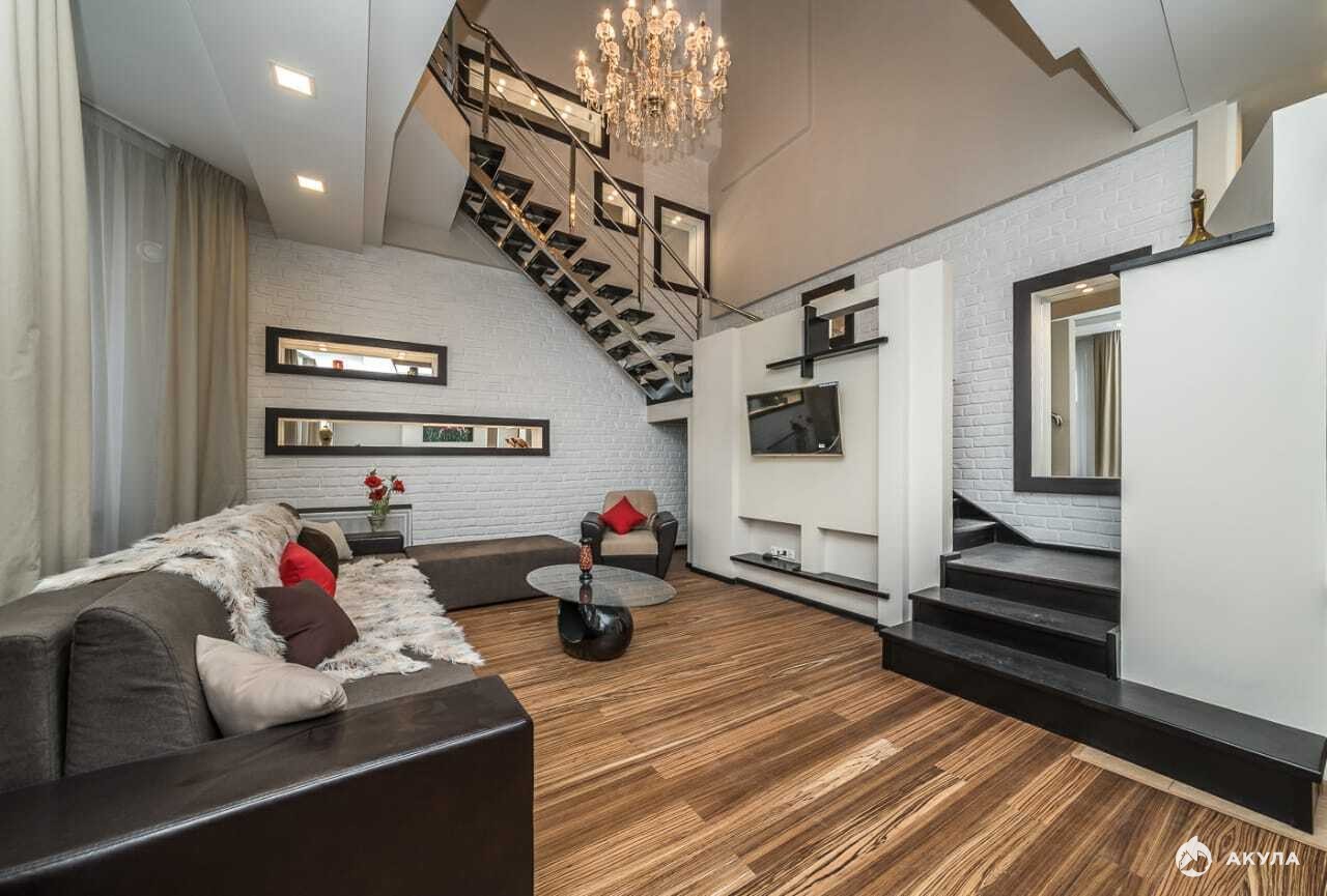 Квартира отличается просторным светлым интерьером с высотой потолков до 8 метров и железобетонными перекрытиями. Выполнен высококачественный ремонт с использованием натуральных материалов, современных технологий и оборудования.