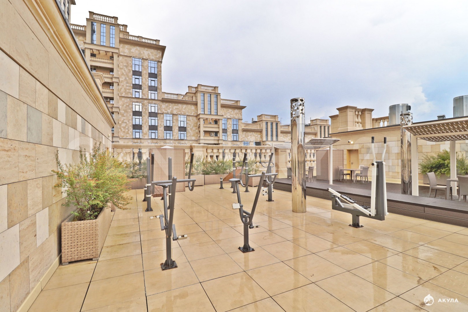 Огороженная и охраняемая территория. Консьерж служба, системы видеонаблюдения. Инфраструктура дома: первый этаж нежилой, с коммерческими пространствами где функционируют 3 продуктовых магазина, аптека, студия растяжки, салоны красоты и эстетической хирургии. В доме двухуровневая подземная автостоянка с автомойкой. На эксплуатируемой крыше ЖК находятся лаунж-зоны для отдыха, шезлонги, летний кинотеатр, зона барбекю. Ландшафтная внутренняя территория с фонтаном, ротондой, беседками и детским игровым городком, двор без машин.