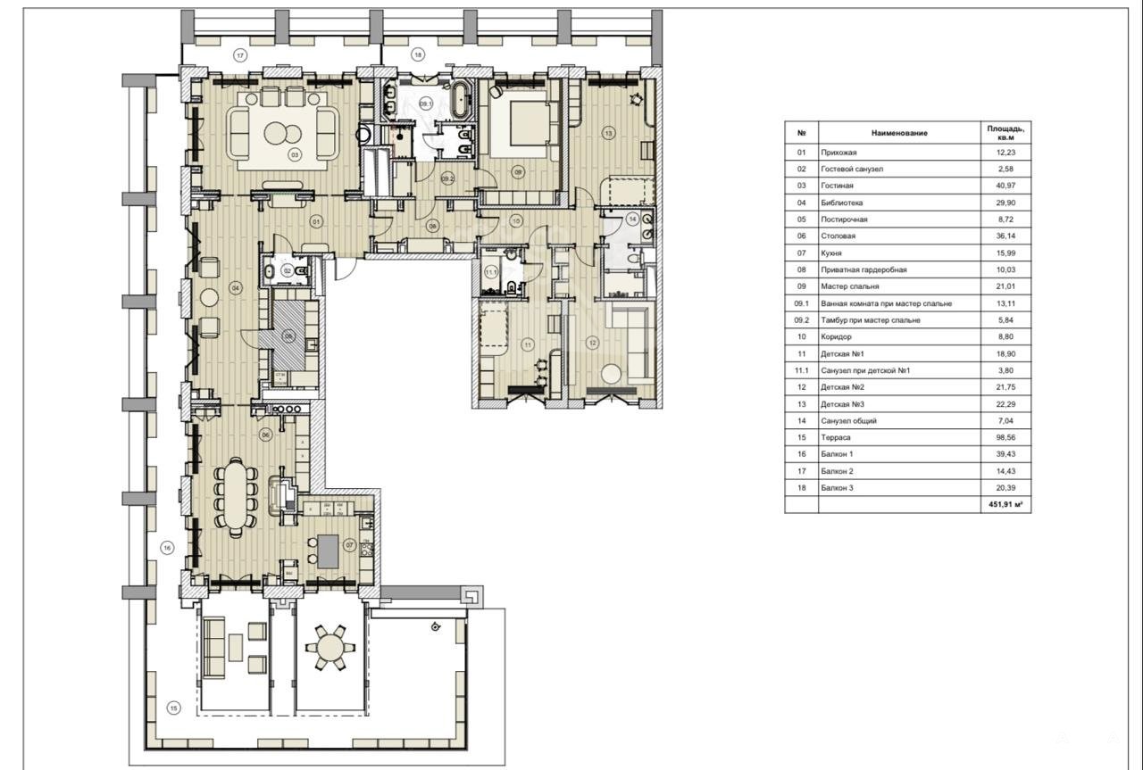 296 м2 квартира + 150 м2 терраса и балкон по внешней стороне квартиры