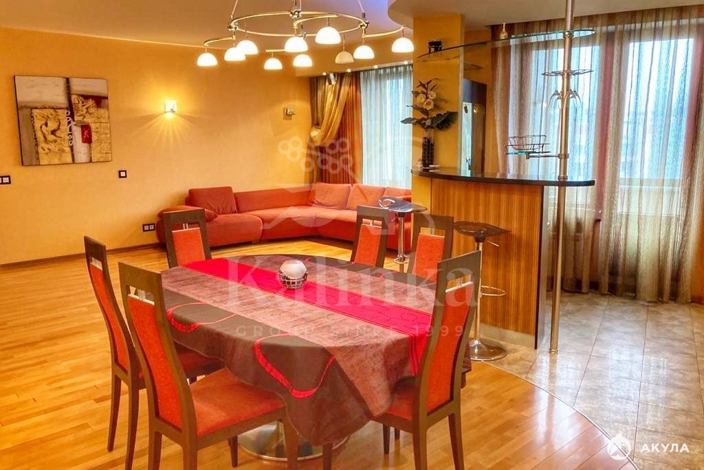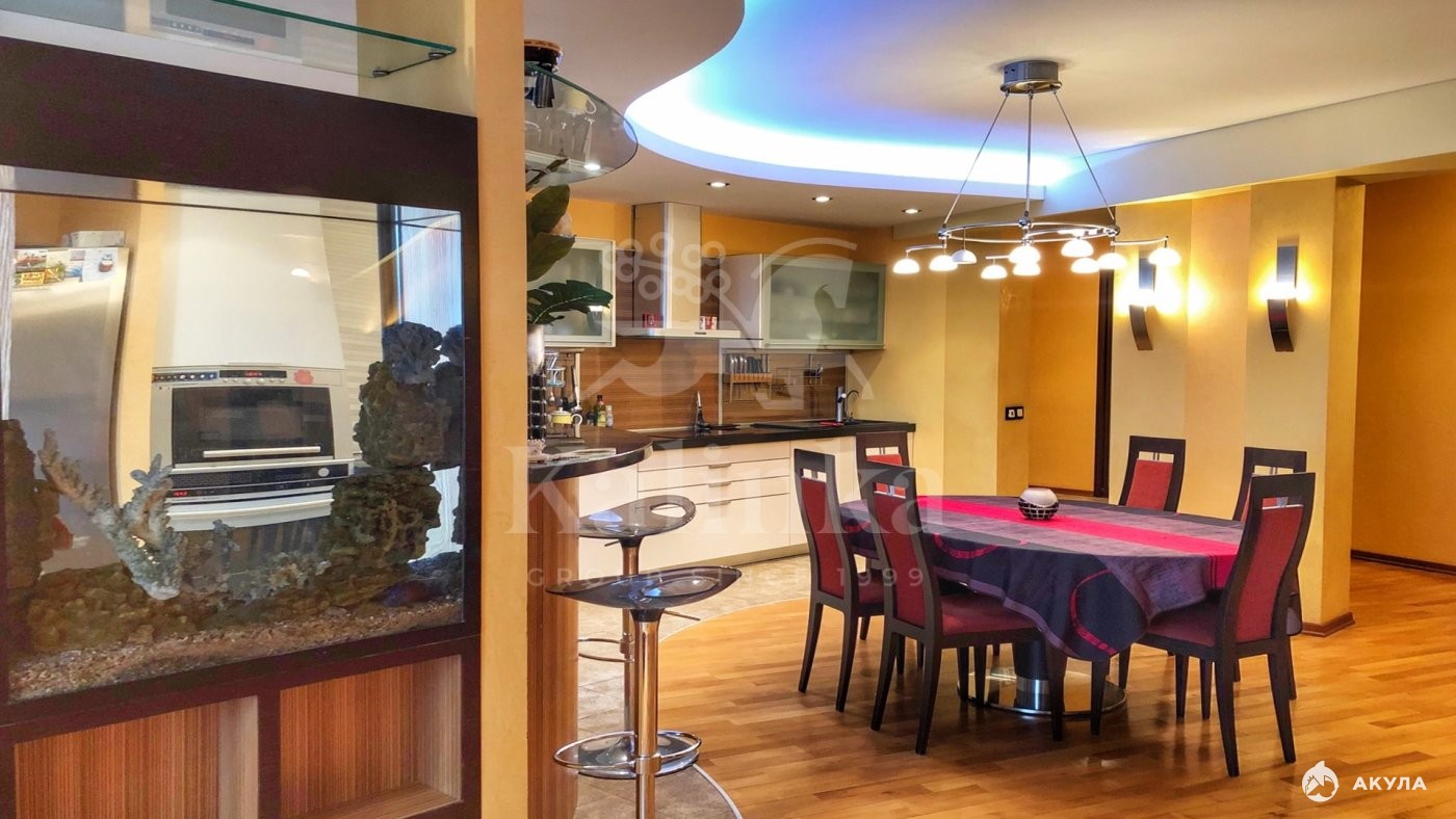 Стильная 5-комнатная квартира с евроремонтом в ЖК "Корона". Удобная, функциональная планировка: просторная кухня-гостиная с балконом, три спальни: взрослая с собственным санузлом и кабинетом, а также две детские с гардеробной, три санузла, три гардеробные комнаты, кладовая-постирочная. Материалы, мебель и бытовая техника от ведущих производителей. Высота потолков — 3 метра. Окна квартиры выходят на две стороны, открывая великолепные виды.