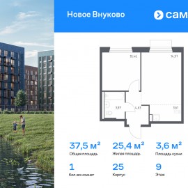 Строим кварталы для жизни с заботой о будущем. Предлагается 1-комнатная квартира комфорт-класса 37, 54 кв.м в корпусе 25 на 9 этаже, в ЖК «Новое Внуково» Квартира без отделки. Доступность опции «отделка» и возможность комплектации мебелью и декором уточняйте у...