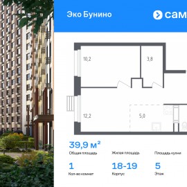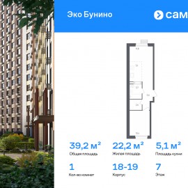 Строим кварталы для жизни с заботой о будущем. Предлагается 1-комнатная квартира комфорт-класса 39, 2 кв.м в корпусе 18-19 на 7 этаже, в ЖК «Эко Бунино» Квартира без отделки. Доступность опции «отделка» и возможность комплектации мебелью и декором уточняйте у...