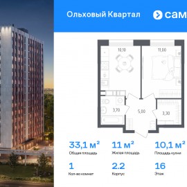 Строим кварталы для жизни с заботой о будущем. Предлагается 1-комнатная квартира комфорт-класса 33, 1 кв.м в корпусе 2.2 на 16 этаже, в ЖК «Ольховый Квартал» Квартира с чистовой отделкой. Доступность дополнительных опций уточняйте у застройщика. Приобрести квартиру возможно по...