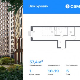 Строим кварталы для жизни с заботой о будущем. Предлагается 1-комнатная квартира комфорт-класса 37, 4 кв.м в корпусе 18-19 на 5 этаже, в ЖК «Эко Бунино» Квартира с чистовой отделкой. Доступность дополнительных опций уточняйте у застройщика. Приобрести квартиру возможно по...