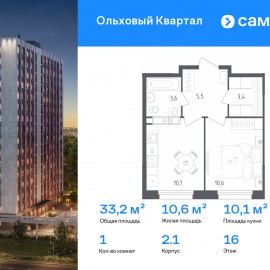 Продается 1-комнатная квартира от застройщика: общая площадь 36.20 м, жилая 12.80 м, кухня 13.90 м, 14-й этаж, жилой квартал «Вдохновение», корпус 33 (секция 1) . Срок сдачи: 4 квартал 2027 года. Позвоните сейчас и забронируйте квартиру! Квартал бизнес-класса СИМВОЛ - это городское...