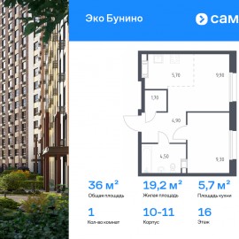 Строим кварталы для жизни с заботой о будущем. Предлагается 1-комнатная квартира комфорт-класса 36 кв.м в корпусе 10-11 на 16 этаже, в ЖК «Эко Бунино» Квартира без отделки. Доступность опции «отделка» и возможность комплектации мебелью и декором уточняйте у...