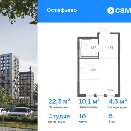 Строим кварталы для жизни с заботой о будущем. Предлагается квартира студия комфорт-класса 22, 29 кв.м в корпусе 18 на 5 этаже, в ЖК «Остафьево» Квартира с чистовой отделкой. Доступность дополнительных опций уточняйте у застройщика. Приобрести квартиру возможно по...