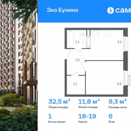 Строим кварталы для жизни с заботой о будущем. Предлагается 1-комнатная квартира комфорт-класса 32, 5 кв.м в корпусе 18-19 на 6 этаже, в ЖК «Эко Бунино» Квартира без отделки. Доступность опции «отделка» и возможность комплектации мебелью и декором уточняйте у...