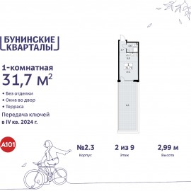 Продается однокомнатная квартира-студия в ЖК "Бунинские кварталы" на 2 этаже. Квартира без отделки, полностью готова к ремонту. Общая площадь: 31.6 кв.м. Терраса представляет собой роскошную зону отдыха, где вы на свой вкус можете создать атмосферу комфорта и уюта. Высота...