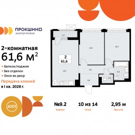 Двухкомнатная квартира в ЖК "Прокшино" на 10 этаже. Квартира без отделки, после получения ключей можно делать ремонт. Общая площадь: 61.6 кв.м., жилая: 25.8 кв.м., площадь просторной кухни-столовой: 19.7 кв.м. Комнаты изолированные, все окна выходят на одну сторону. В квартире одна...