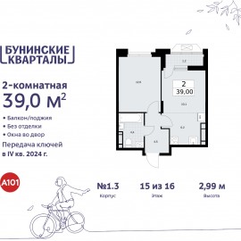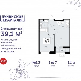 Продается 2-комн. квартира бизнес-класса с европланировкой и отделкой в ЖК "Бунинские кварталы" на 6 этаже. Общая площадь: 39.1 кв.м., жилая: 24.3 кв.м., суммарная площадь гостиной-столовой с кухонной зоной: 16.5 кв.м. Европейская планировка, зона гостиной комнаты объединена с кухней....