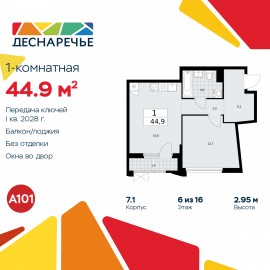 Однокомнатная квартира от застройщика в ЖК "Деснаречье" на 6 этаже. Квартира без отделки, после оформления собственности можно делать ремонт. Общая площадь: 44.9 кв.м., жилая: 12.7 кв.м., площадь просторной кухни-столовой: 16.9 кв.м. Квартира угловая, идеально подойдет любителям...