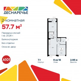 2-комн. квартира в ЖК "Деснаречье" на 6 этаже. Квартира без отделки, полностью готова к чистовой отделке и дальнейшему ремонту. Общая площадь: 57.7 кв.м., жилая: 23.3 кв.м., площадь просторной кухни-столовой: 18.4 кв.м. Квартира - распашонка, без проходных комнат, окна выходят на paзные...