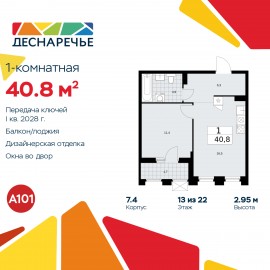 Просторная 1-комн. квартира с отделкой в ЖК "Деснаречье" на 13 этаже. Общая площадь: 40.8 кв.м., жилая: 11.4 кв.м., площадь просторной кухни-столовой: 16.5 кв.м. Все окна выходят на одну сторону. В квартире одна лоджия, один совмещенный санузел. Высота потолков 2.95 м. Эта квартира будет...