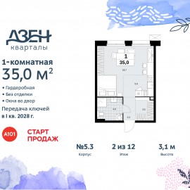 Продается 1-комн. квартира бизнес-класса-студия от застройщика в ЖК "Дзен-кварталы" на 2 этаже. Квартира без отделки, новый собственник может сделать ремонт по индивидуальному дизайн-проекту. Общая площадь: 35 кв.м., площадь гостиной 24.2 кв.м., из которых 5.5 кв.м. выделено под...