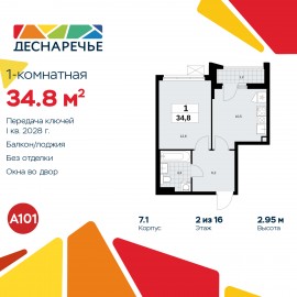 1-комн. квартира в ЖК "Деснаречье" на 2 этаже. Квартира без отделки, новый собственник может сделать ремонт по своему дизайн-проекту. Общая площадь: 34.8 кв.м., жилая: 12.6 кв.м., площадь просторной кухни-столовой: 10.5 кв.м. Все окна выходят на одну сторону. В квартире одна лоджия, один...