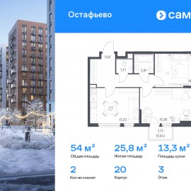 Строим кварталы для жизни с заботой о будущем. Предлагается 2-комнатная квартира комфорт-класса 53, 95 кв.м в корпусе 20 на 3 этаже, в ЖК «Остафьево» Квартира без отделки. Доступность опции «отделка» и возможность комплектации мебелью и декором уточняйте у...