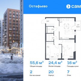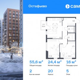 Строим кварталы для жизни с заботой о будущем. Предлагается 2-комнатная квартира комфорт-класса 55, 61 кв.м в корпусе 20 на 7 этаже, в ЖК «Остафьево» Квартира с чистовой отделкой. Доступность дополнительных опций уточняйте у застройщика. Приобрести квартиру возможно по...