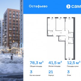 Строим кварталы для жизни с заботой о будущем. Предлагается 3-комнатная квартира комфорт-класса 78, 33 кв.м в корпусе 21 на 3 этаже, в ЖК «Остафьево» Квартира без отделки. Доступность опции «отделка» и возможность комплектации мебелью и декором уточняйте у...