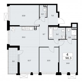 Четырехкомнатная квартира с европланировкой в ЖК "Скандинавия" на 14 этаже. Квартира без отделки, полностью готова к ремонту. Общая площадь: 97.6 кв.м., жилая: 54.9 кв.м., общая площадь гостиной-столовой с кухонной зоной: 25.8 кв.м. Европейская планировка, кухня и гостиная объединены...