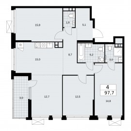 Продается 4-комн. квартира с европланировкой в ЖК "Скандинавия" на 17 этаже. Квартира без отделки, после получения ключей можно делать ремонт. Общая площадь: 97.7 кв.м., жилая: 55.8 кв.м., суммарная площадь гостиной-столовой с кухонной зоной: 27.7 кв.м. Европейская планировка, за счет...