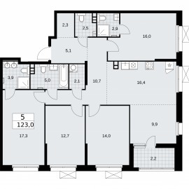 5-комн. квартира с европланировкой в ЖК "Скандинавия" на 3 этаже. Квартира без отделки, полностью готова к ремонту. Общая площадь: 123 кв.м., жилая: 69.9 кв.м., суммарная площадь гостиной-столовой с кухонной зоной: 26.3 кв.м. Европланировка, площадь комнат позволяет разместить в них...