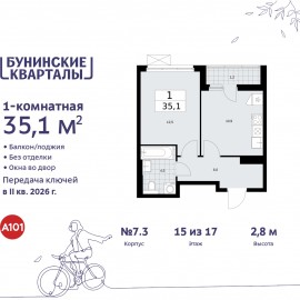 Однокомнатная квартира от застройщика в ЖК "Бунинские кварталы" на 15 этаже. Квартира без отделки, после выдачи ключей можно делать ремонт. Общая площадь: 35.3 кв.м. Высота потолков 2.8 м. Квартира будет сдана без отделки. Установлены стеклопакеты с повышенной тепло- и...
