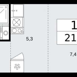 1-комн. квартира-студия в ЖК "Бунинские кварталы" на 15 этаже. Квартира без отделки, после получения ключей можно делать ремонт. Общая площадь: 21.3 кв.м., площадь гостиной 12.7 кв.м., из которых 5.3 кв.м. выделено под кухонную зону. Все окна выходят на одну сторону. В квартире один...