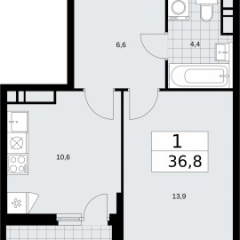 Однокомнатная квартира в ЖК "Бунинские кварталы" на 14 этаже. Квартира без отделки, новый владелец может сделать ремонт по индивидуальному дизайн-проекту. Общая площадь: 36.8 кв.м., жилая: 13.9 кв.м., площадь просторной кухни-столовой: 10.6 кв.м. Все окна выходят на одну сторону. В...