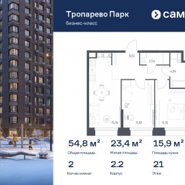 Строим кварталы для жизни с заботой о будущем. Предлагаются 2-комнатные апартаменты бизнес-класса 54, 83 кв.м в корпусе 2.2 на 21 этаже, в МФК «Тропарево Парк» Апартаменты с чистовой отделкой. Доступность дополнительных опций уточняйте у застройщика. Прописка не предусмотрена...