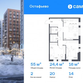 Строим кварталы для жизни с заботой о будущем. Предлагается 2-комнатная квартира комфорт-класса 54, 97 кв.м в корпусе 20 на 14 этаже, в ЖК «Остафьево» Квартира без отделки. Доступность опции «отделка» и возможность комплектации мебелью и декором уточняйте у...