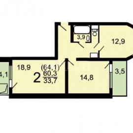 Лот № 72843 БЕЗ ТОРГА. Евро-трехкомнатная, полностью готовая к проживанию, с мебелью и техникой. Кухня-гостиная 13, 2 кв. м, , и две просторные изолированные комнаты на разные стороны: 18, 9 кв. м. с лоджией, вторая 14, 8 кв. м. с балконом с окнами во двор, раздельный санузел и большой...