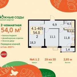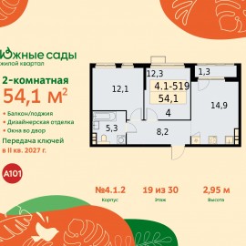 2-комн. квартира с отделкой в ЖК "Южные сады" на 19 этаже. Общая площадь: 54.1 кв.м., жилая: 24.3 кв.м., площадь просторной кухни-столовой: 15 кв.м. Комнаты изолированные, все окна выходят на одну сторону. В квартире одна лоджия, один совмещенный санузел. Высота потолков 2.95 м. Дом...
