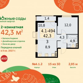 Продается 2-комн. квартира с европланировкой и отделкой в ЖК "Южные сады" на 15 этаже. Общая площадь: 42.3 кв.м., жилая: 22.8 кв.м., общая площадь гостиной-столовой с кухонной зоной: 19.7 кв.м. Европланировка, кухня-гостиная - идеальный вариант для тех, кто любит часто принимать гостей....