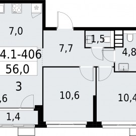 Просторная трехкомнатная квартира с европланировкой и отделкой в ЖК "Южные сады" на 29 этаже. Общая площадь: 56 кв.м., жилая: 33.4 кв.м., суммарная площадь гостиной-столовой с кухонной зоной: 19.7 кв.м. Европланировка, кухня-гостиная - идеальный вариант для тех, кто любит часто...