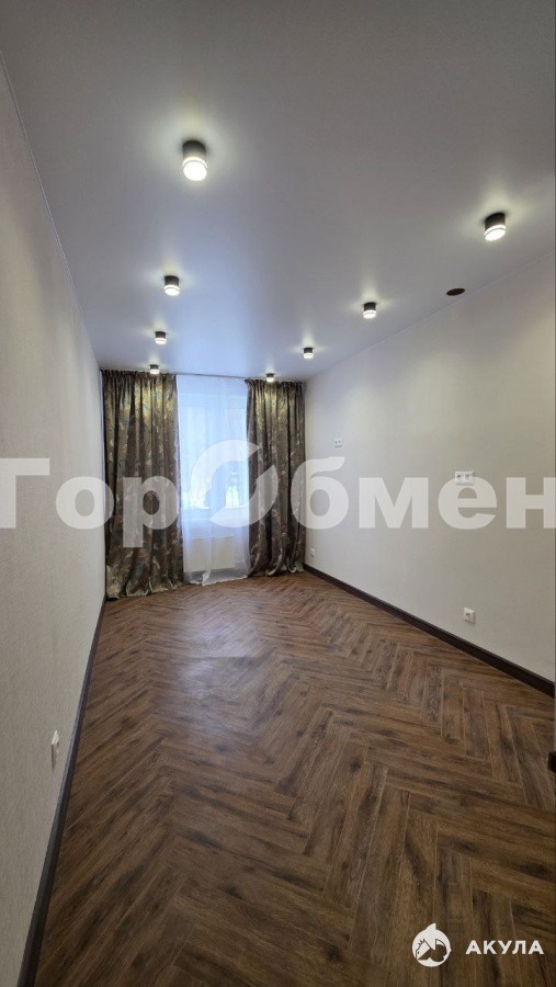 Высокий первый этаж 14-ти этажного дома. Студия 1 на схеме. Площадь 12, 6 кв.м, санузел совмещенный, выводы под кухню, установлены счетчики воды и электроэнергии. Окна выходят во двор.