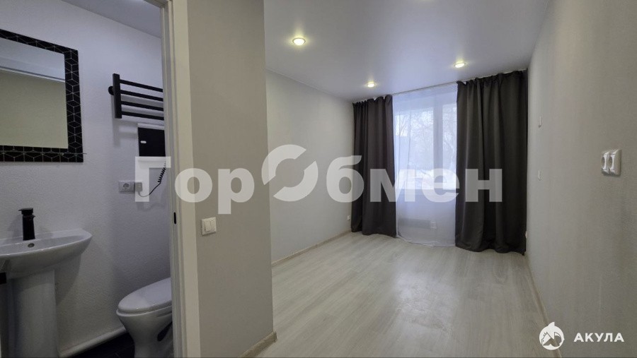 Высокий первый этаж 14-ти этажного дома. Студия 3 на схеме. Площадь 19, 8 кв.м, санузел совмещенный, выводы под кухню, установлены счетчики воды и электроэнергии. Окна выходят во двор.