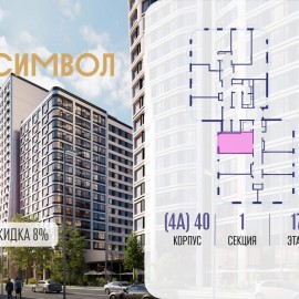Продается квартира-студия от застройщика: общая площадь 28.40 м, жилая м, кухня м, 8-й этаж, жилой квартал «Гордость», корпус 39 (секция 1) . Срок сдачи: 2 квартал 2029 года. Позвоните сейчас и забронируйте квартиру! Квартал бизнес-класса СИМВОЛ - это городское пространство нового...