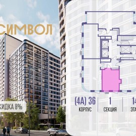 Продается квартира-студия от застройщика: общая площадь 33.40 м, жилая 10.00 м, кухня 14.40 м, 6-й этаж, жилой квартал «Гордость», корпус 36 (секция 4) . Срок сдачи: 2 квартал 2029 года. Позвоните сейчас и забронируйте квартиру! Квартал бизнес-класса СИМВОЛ - это городское пространство...