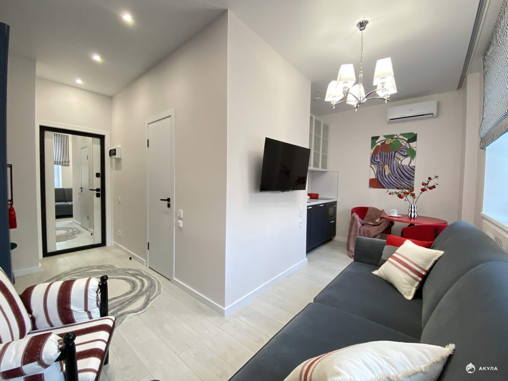 Студия 22.5 м2 в историческом центре Москвы. Улица Большая Татарская, дом 20, строение 2. Выполнен новый дизайнерский ремонт с полной заменой всех коммуникаций. Высокий уровень шумоизоляции — 62 Дб (уровень банковских переговорных). Дом расположен внутри Садового кольца, в тихом районе, пешая доступность метро.